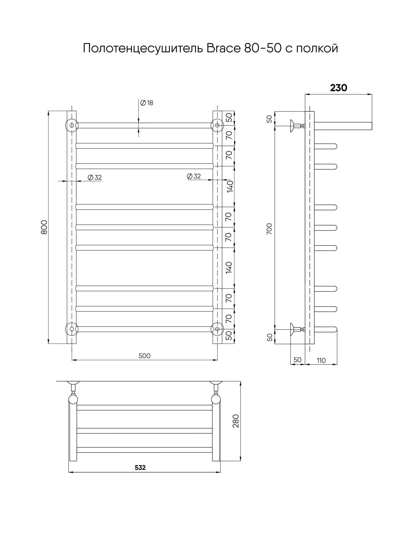 Полотенцесушитель водяной Indigo Brace LBCW80-50P с полкой 80x50 см хром
