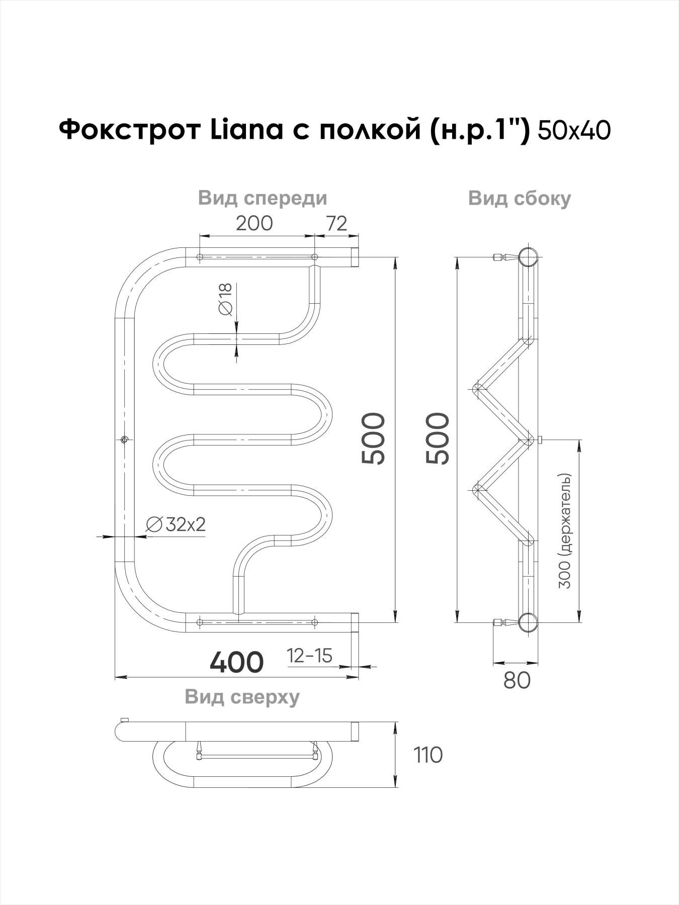 Полотенцесушитель водяной Indigo Фокстрот Liana FLW50-40P с полкой 50x40 см хром