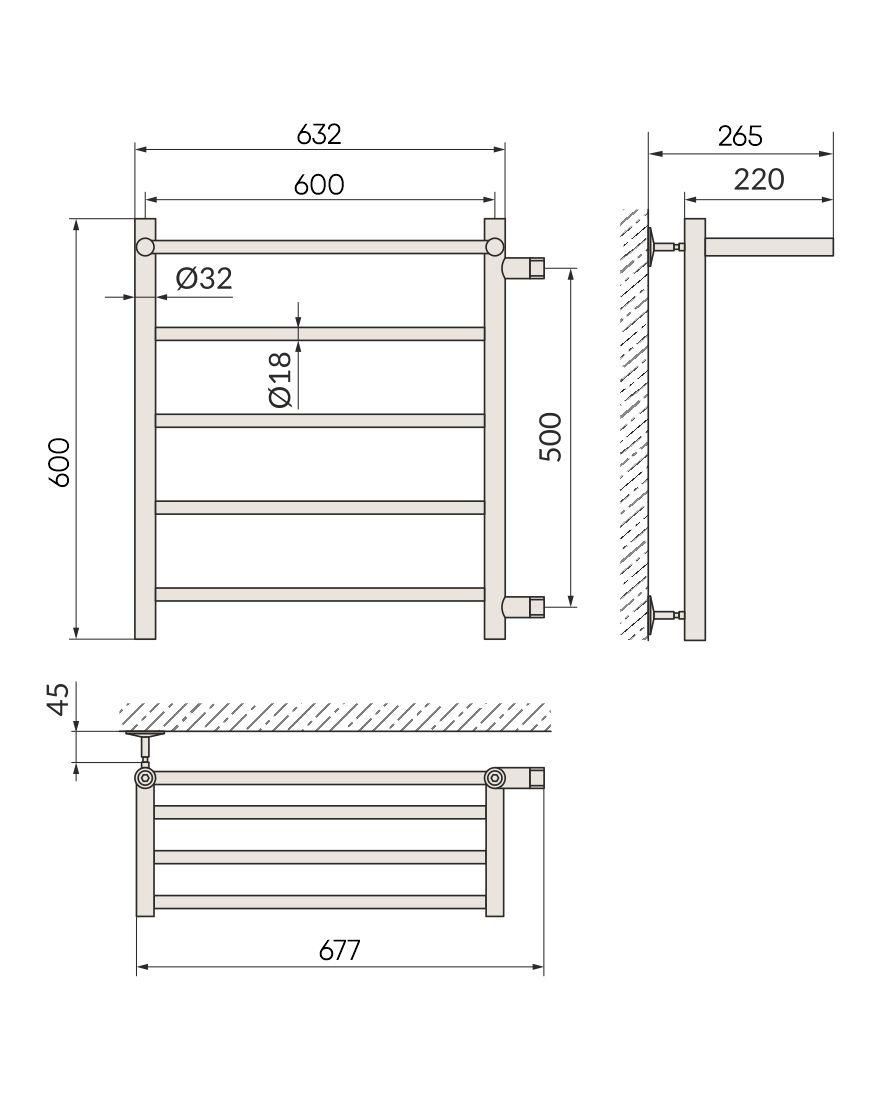 одяной полотенцесушитель в форме Лесенки Line с полочкой – это оригинальная модель с прям... Подробнее