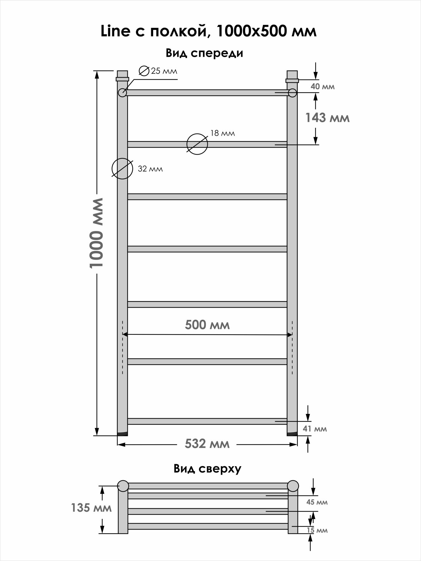 Стильную полированную поверхность изделию обеспечивает этап электрохимическая полировка. Изделие с небольшим количеством перекладин, но со своей основной задачей справляется: сушит текстильные изделия, предотвращает повышенную влажность и появление плесени в помещении.