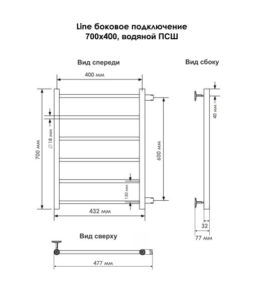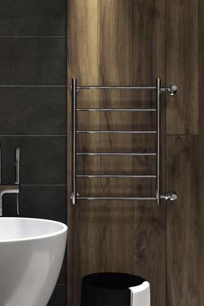 Водяной полотенцесушитель серии «Лесенка» Line с боковым подключением имеет большое количество перекладин, что удобно для сушки большого количества текстильных изделий. Изделие выпускается в нескольких размерах для удобства подбора в ванную комнату индивидуально. Простой, но стильный и изысканный сушитель изготовлен из высококачественной нержавеющей стали марки AISI 304, к тому же комплектуется держателями, колпачками и системой воздухоотводчиков. «Лесенка» имеет хорошую теплоотдачу и предотвращает появление плесени в ванной комнате.