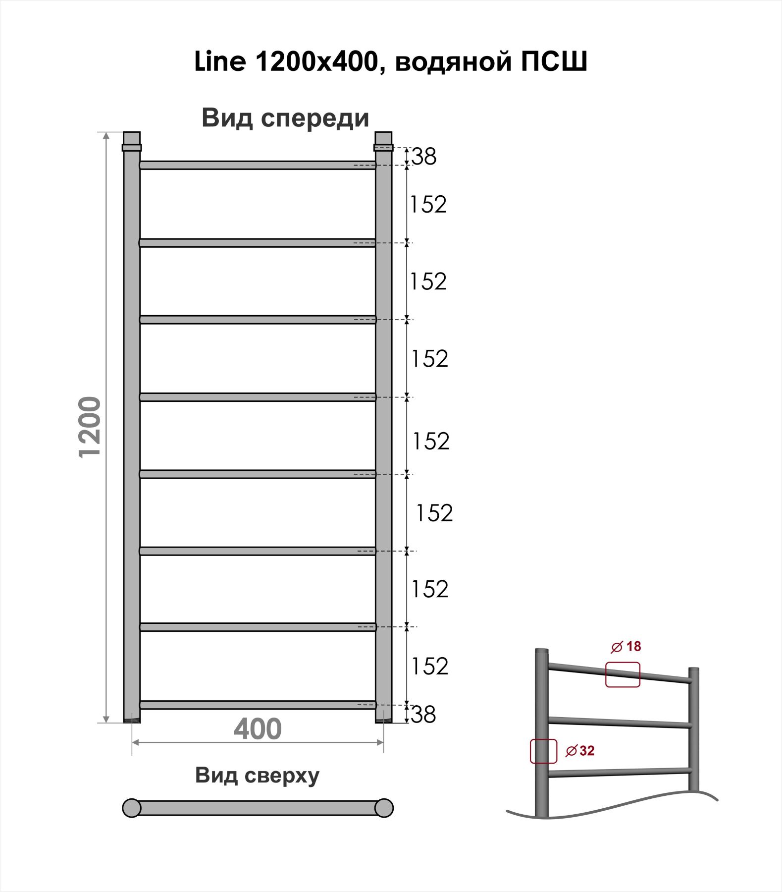 Водяной полотенцесушитель серии «Лесенка» Line имеет большое количество перекладин, что удобно для сушки большого количества текстильных изделий.