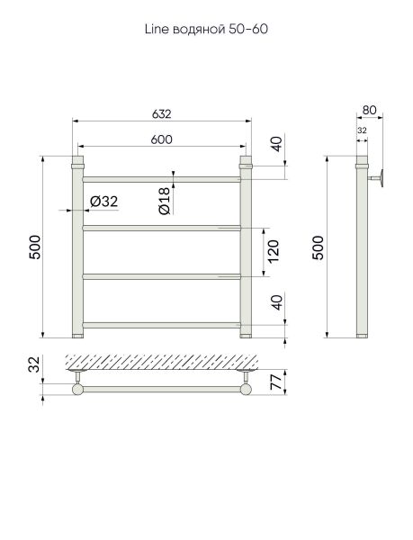 Водяной полотенцесушитель серии «Лесенка» Line имеет большое количество перекладин, что удобно для сушки большого количества текстильных изделий.