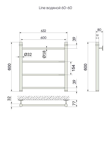 Водяной полотенцесушитель серии «Лесенка» Line имеет большое количество перекладин, что удобно для сушки большого количества текстильных изделий.