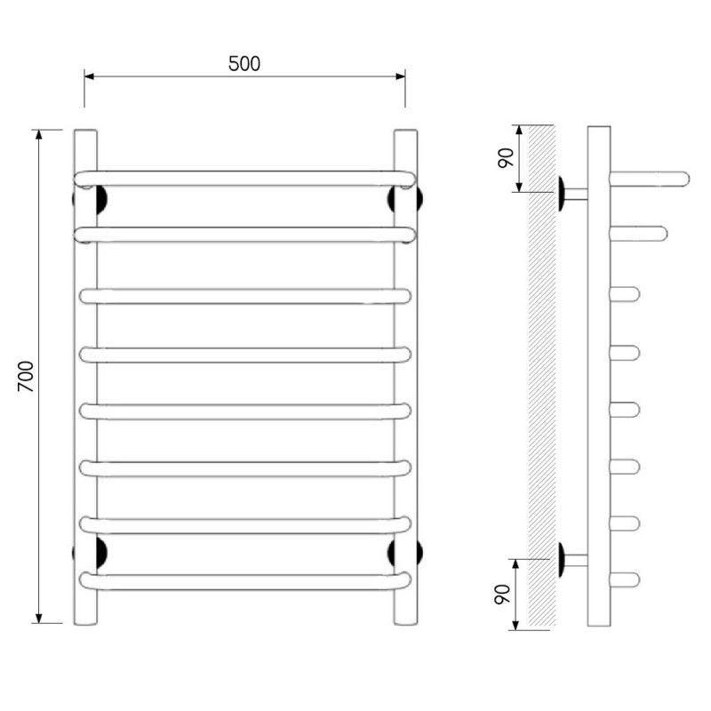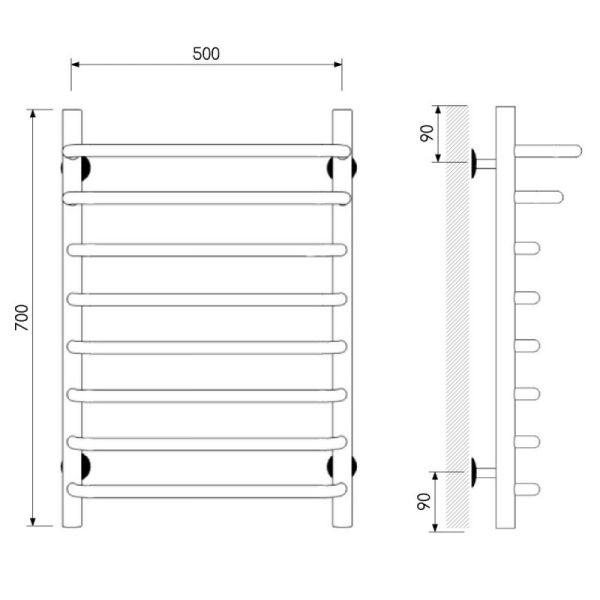 Полотенцесушитель изготовлен из нержавеющей стали — износостойкого и не подверженного коррозии материала, легко выдерживающего агрессивную среду систем отопления.