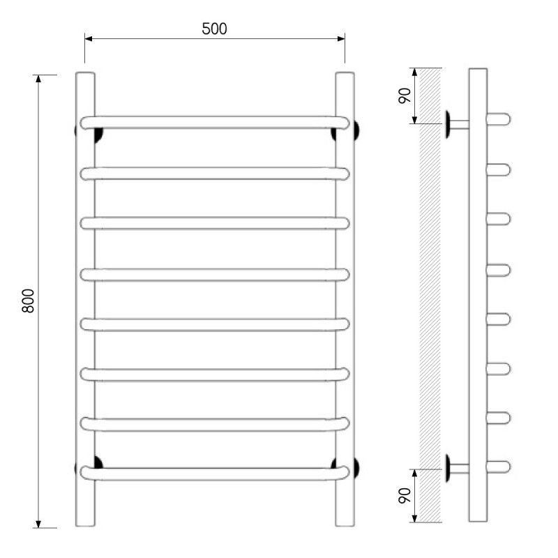 Полотенцесушитель изготовлен из нержавеющей стали — износостойкого и не подверженного коррозии материала, легко выдерживающего агрессивную среду систем отопления.