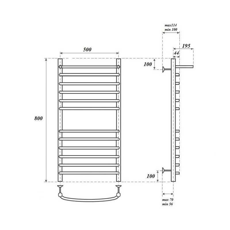 Полотенцесушитель водяной Point PN05158SP П11 500x800 с полкой, хром
