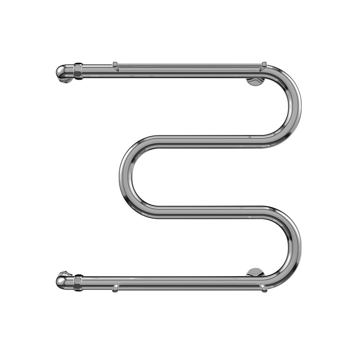 М-образные полотенцесушители с полкой – это стильное и функциональное решение для любого интерьера. Они позволяют экономить ограниченное пространство ванной комнаты, максимально грамотно используя каждый свободный сантиметр. На плавно изогнутых перекладинах конструкции можно сушить влажное белье. Две небольшие полки в верхней и нижней частях изделия отлично подойдут для хранения полотенец.
