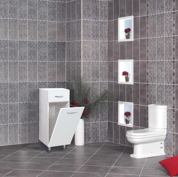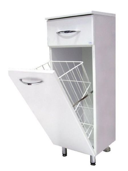 Оптимальная высота пенала позволяет использовать его поверхность как дополнительную столешницу, небольшой удобный ящик с направляющими полного выдвижения подойдет для хранения мелких аксессуаров, а за дверцей скрывается отделение с корзиной для белья. Размер бельевой корзины: 240*230*435.