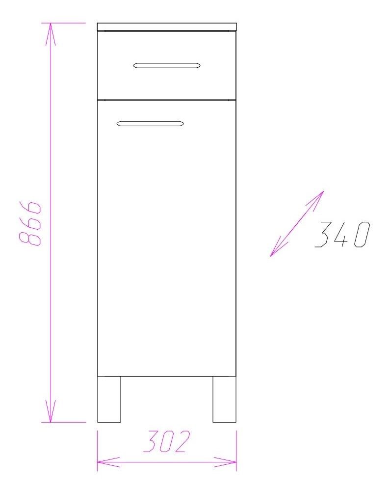 Размер пенала с ножками 30*34*87 см.