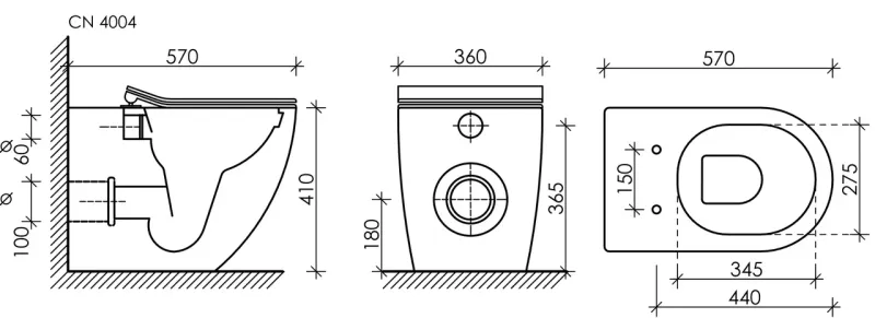 Приставной унитаз Ceramica Nova Metropol CN4004MB безободковый чёрный матовый