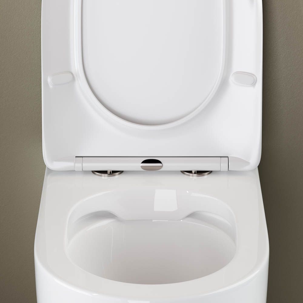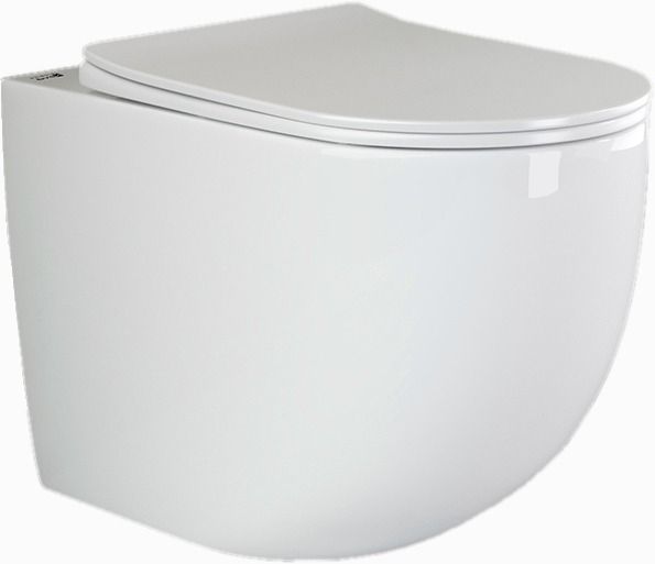 Напольный пристенный унитаз-соло HighLight Rimless, глубокий смыв, горизонтальный (универсальный) выпуск, с крепежом, ультра тонким сидением с функцией плавного закрытия, дюропласт