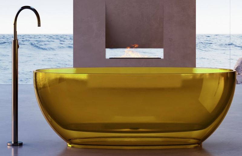 Прозрачная ванна ABBER Kristall AT9703Amber из полиэфирной смолы 170x75см жёлтый купить