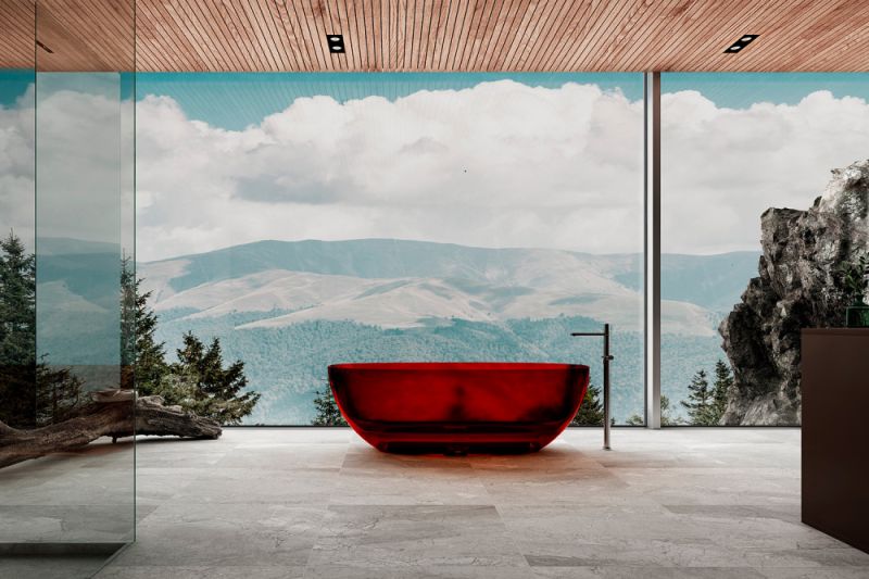 Прозрачная ванна ABBER Kristall AT9703Rubin из полиэфирной смолы 170x75см красный купить