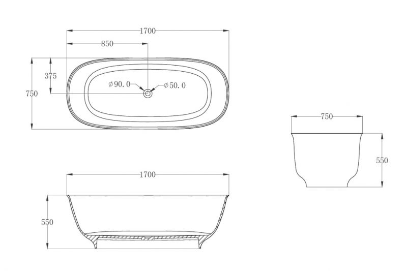 Прозрачная ванна ABBER Kristall AT9707Onyx из полиэфирной смолы 170x75см чёрный купить
