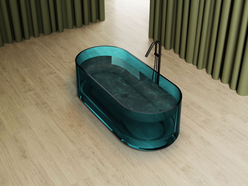 Прозрачная ванна ABBER Kristall AT9708Aquamarin из полиэфирной смолы 170x75см бирюзовый купить