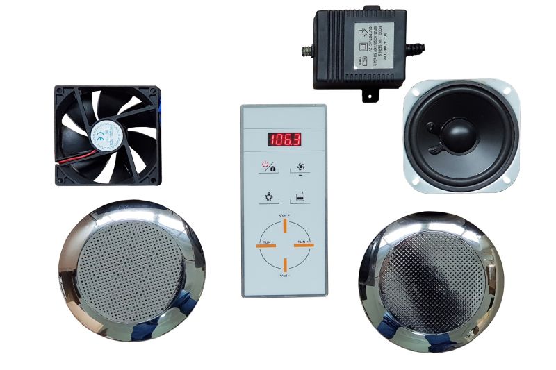 Данная позиция включает в себя;- подсветку;- радио;- вытяжной вентилятор;- bluetooth Позиция врезается под заказ.