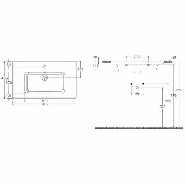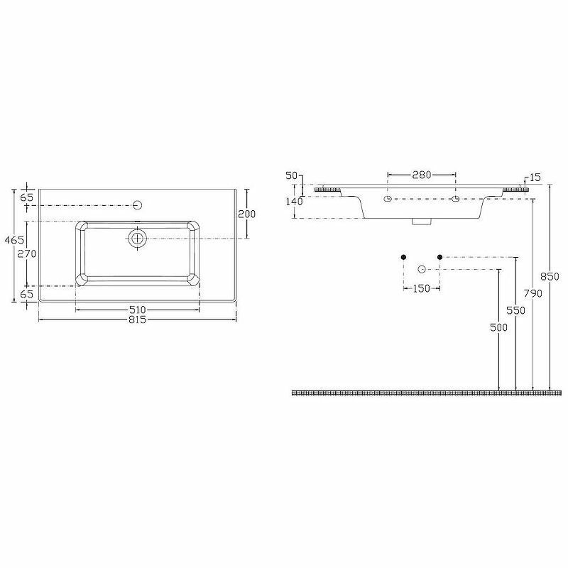 • Отверстия под смеситель: