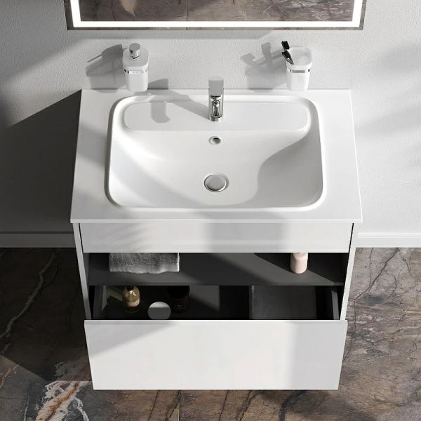 ▫️ Универсальный монтаж — устанавливается на тумбу стандартного размера с центральным отверстием под смеситель
