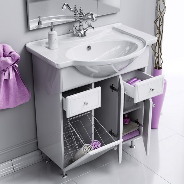 Основная линия керамических умывальников для мебели. Округлая форма чаши с достаточно большим пространством на боковых полочках. Универсальный дизайн подходящий к каждому стилю ванной мебели.