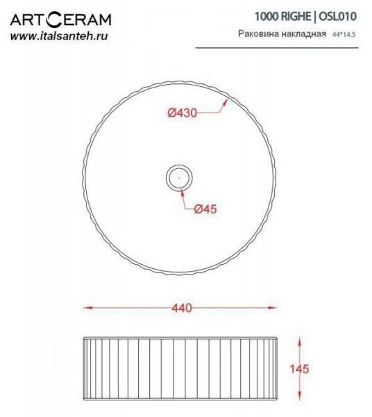 Раковина ArtCeram Millerighe OSL010 05 00 44 смArtCeram Millerighe OSL010 05 00 Раковина накладная Ø 44 см, размер 44х44х15 см. Без перелива, без плоскости под смеситель. Цвет белый матовый.