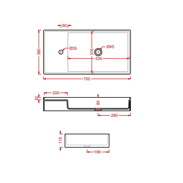 • Отверстия под смеситель: