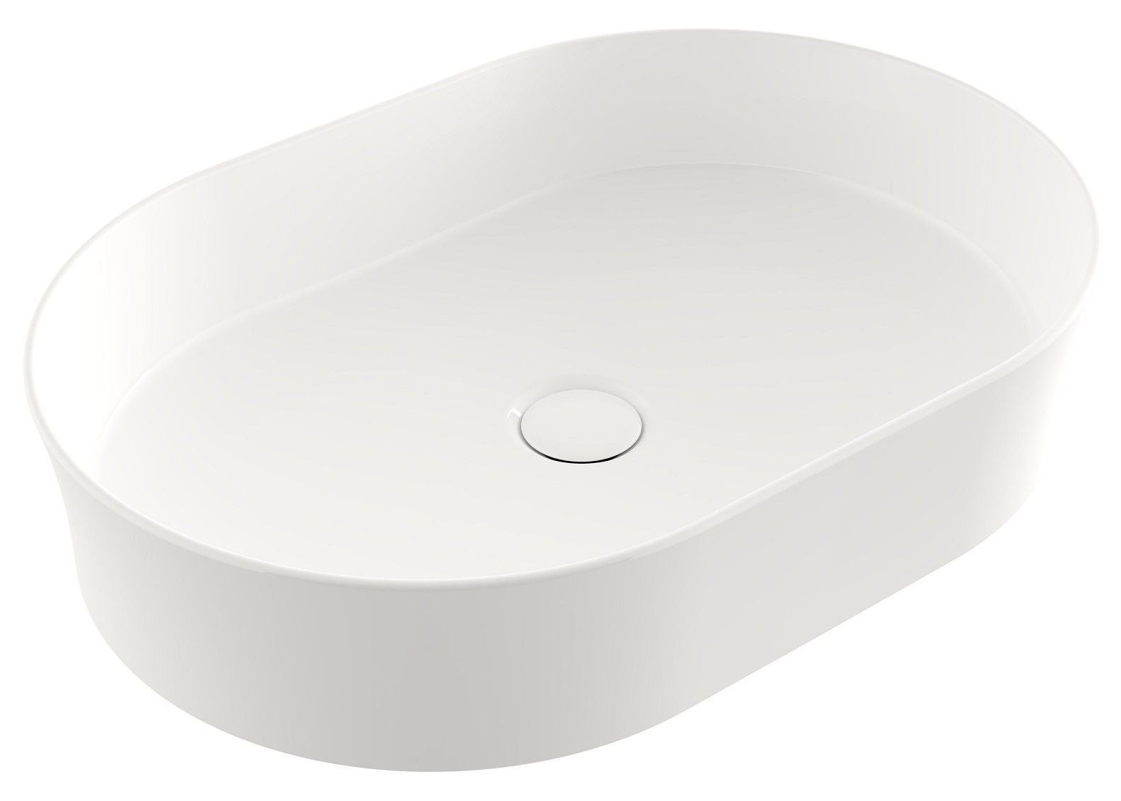 Накладная раковина из санфарфора Berges Ego SL размером 55х38х11,5 см.Овальной формы, без отверстия под смеситель, глянцевая белая.