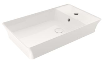 Накладная раковина из санфарфора Berges Ego размером 60х38 см.Прямоугольной формы, с отверстием под смеситель, глянцевая белая.Вырезной слив-перелив.