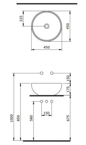 Накладная раковина из санфарфора Berges Mascon диаметром 45 см.Высота 17,5 см.Круглой формы, без отверстия под смеситель, матовый антрацит.Гарантия 10 лет*Донный клапан необходимо приобрести отдельно