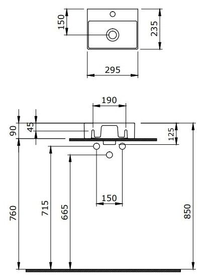 Подвесная раковина из санфарфора Berges Small размером 29х24х9 см.Прямоугольная, с отверстием под смеситель, глянцевая белая.Крепеж в комплекте.Подходит для использования на столешнице.