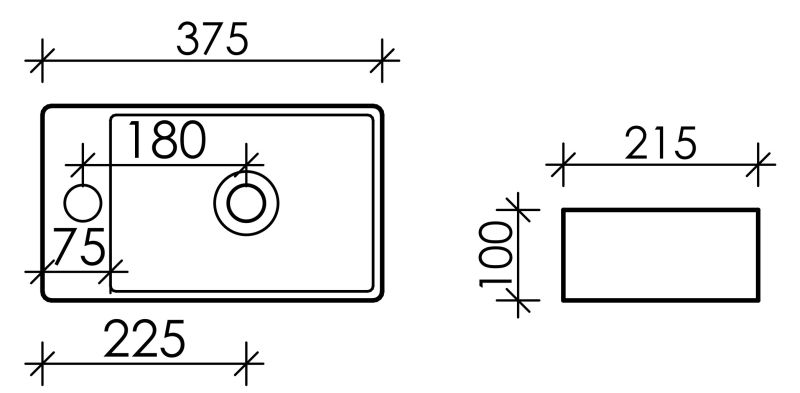- Отверстие под смеситель слева