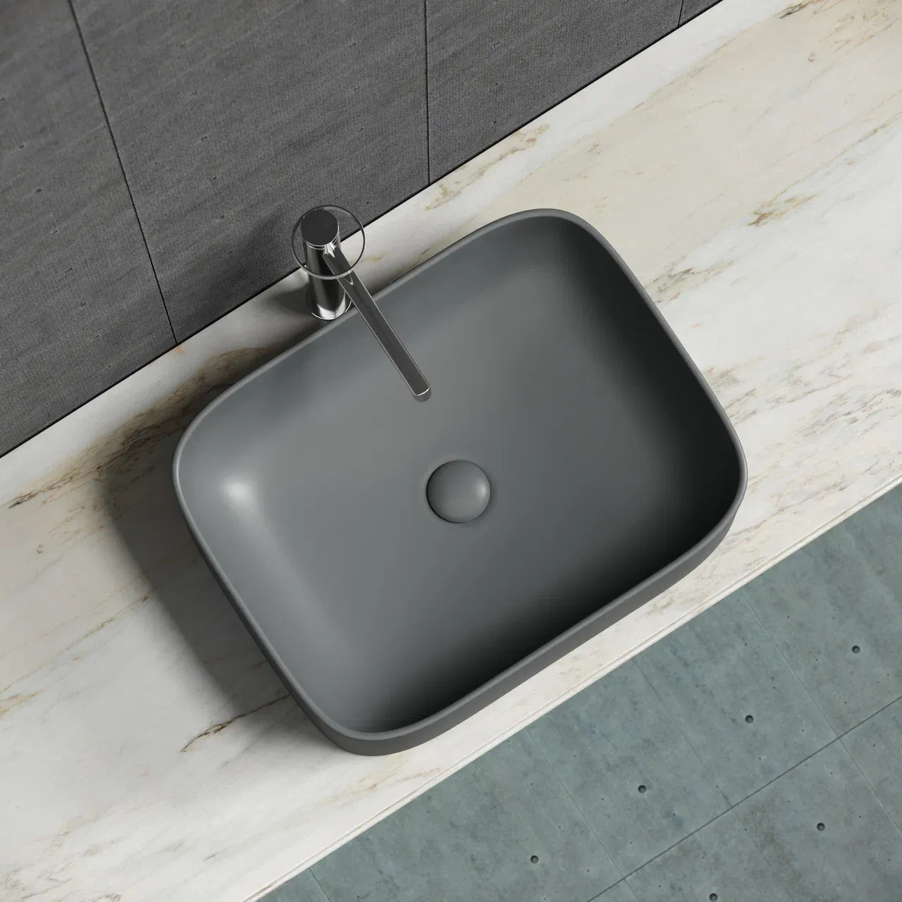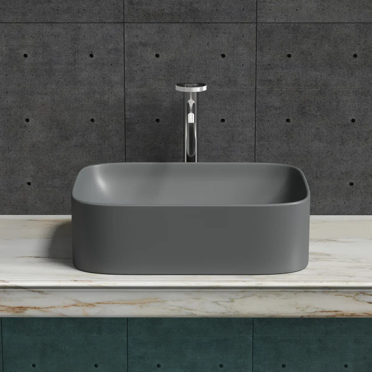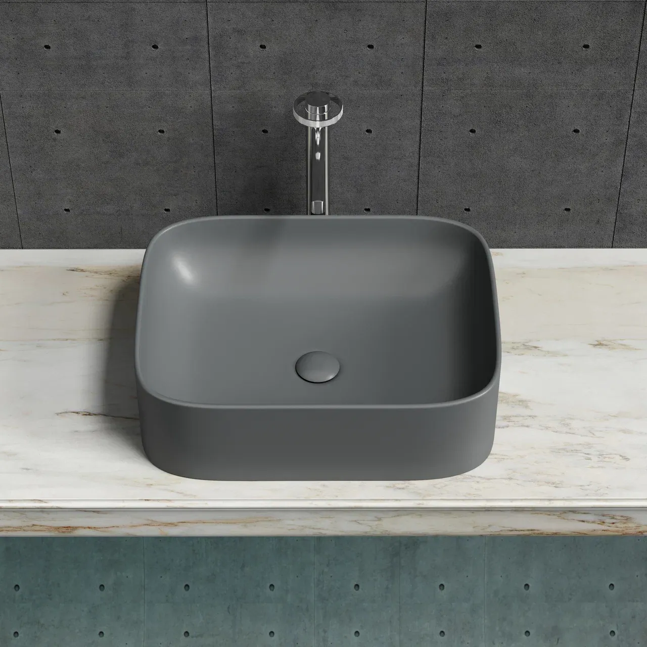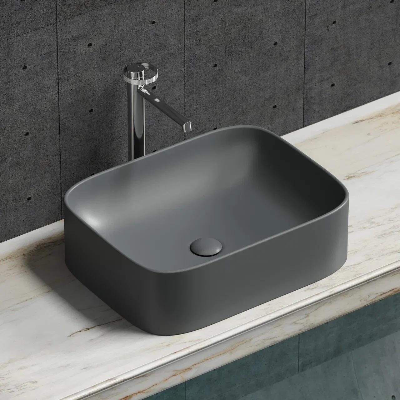 Умывальник чаша накладная прямоугольная (цвет Темный Антрацит Матовый) Element 505*380*150мм