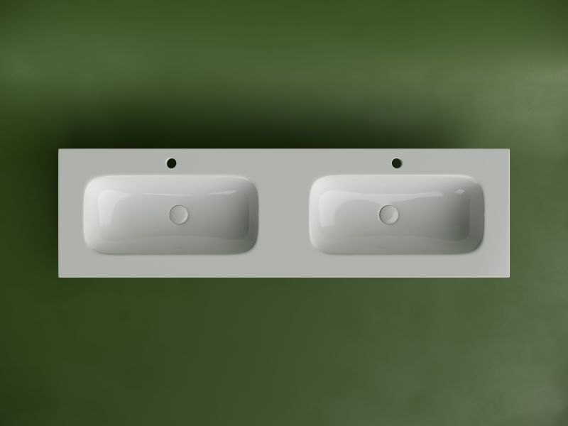 • Коллекция Grace. Размер 1610x457x137 мм, с двумя чашами и отверстиями под смеситель.
