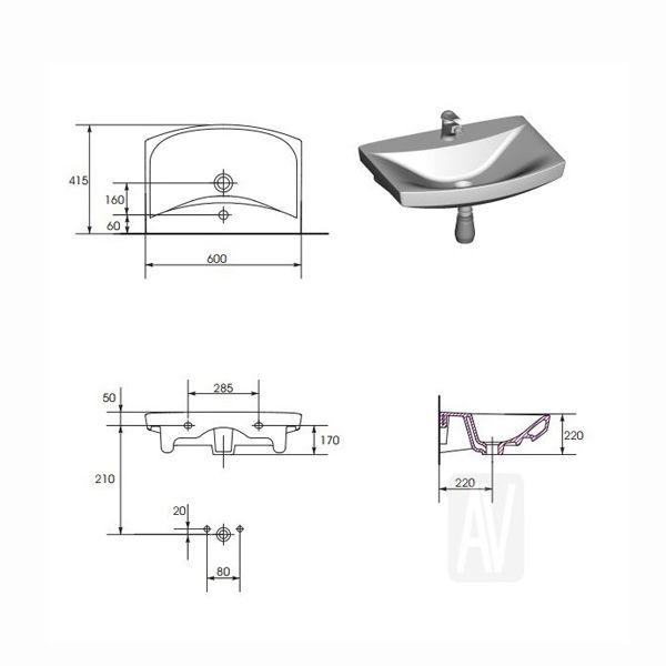 Раковина Cersanit CARINA 60 UM-CAR60/1 60x41.5