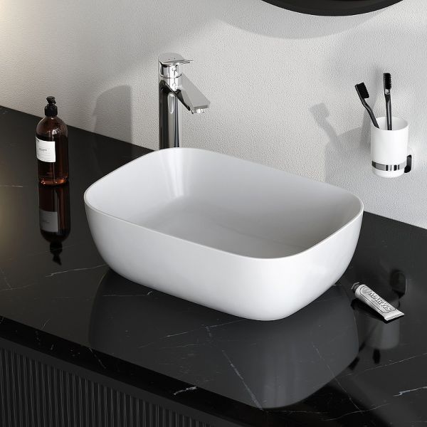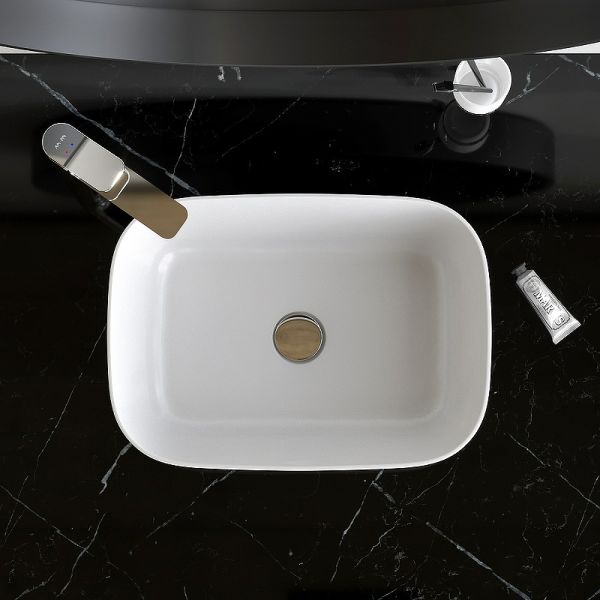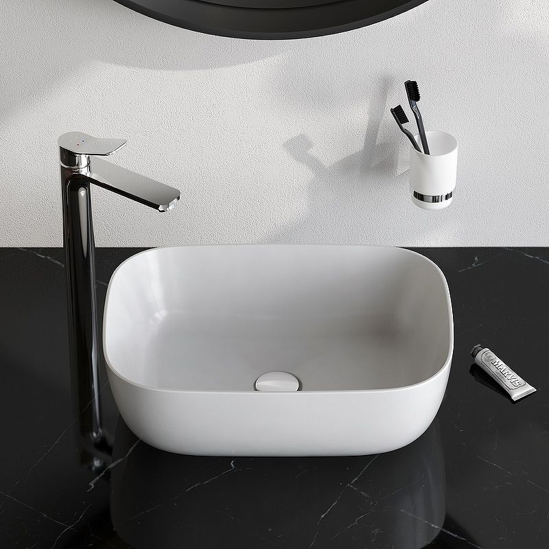 • Универсальность — отсутствие отверстия под смеситель позволяет выбрать любую конфигурацию монтажа (настенный или настольный смеситель).
