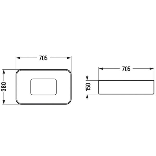 Размеры (ШхВхД): 705x150x350 мм.
