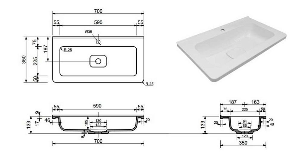 • Отверстия под смеситель: