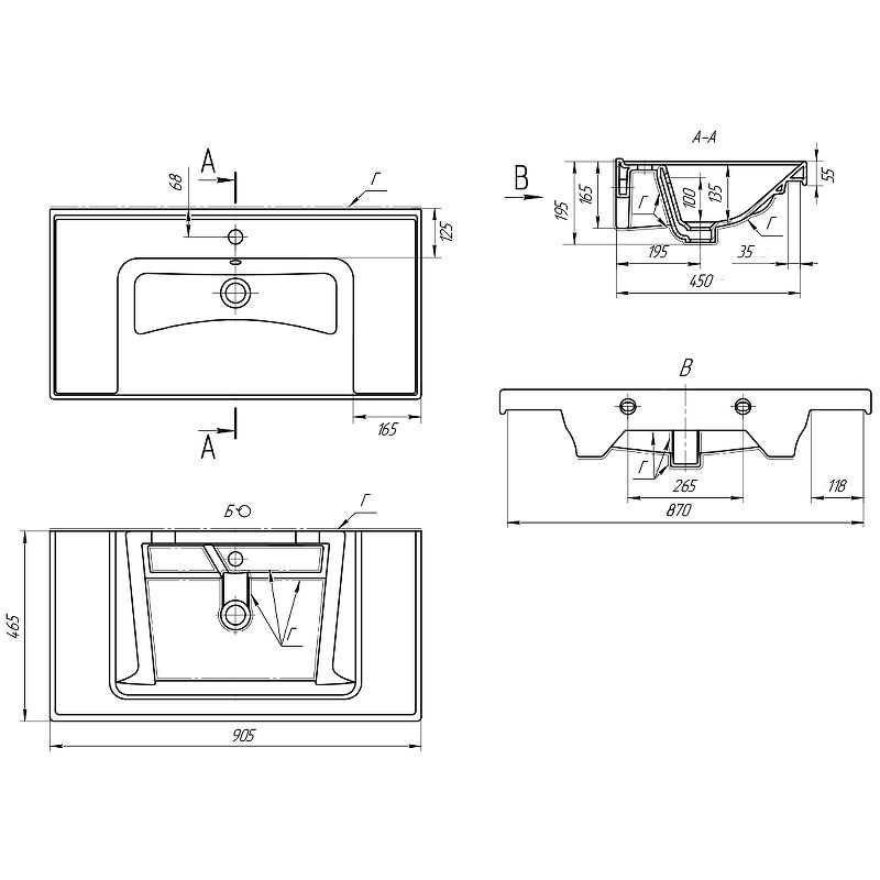 Тип: раковиныПо форме: прямоугольныеРазмер, мм (ШxГxВ): 905x465x195Размер в упаковке, мм (ШxГxВ): 935x495x225Цвет: белыйВес с упаковкой, кг: 21.5По монтажу: мебельнаяМатериал: керамика
