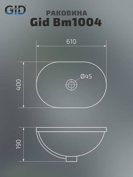 Integrado —встраиваемые раковины, которые объединяют в себе испанский стиль и международное признание качества. Встраиваемая сверху раковина GiD Bm1004 стильная и современная модель из высококачественной керамики с черным матовым покрытием, благодаря чему раковину легко интегрировать в любую ванную комнату, создавая уютную атмосферу. Отсутствие отверстия под смеситель подчеркивает минималистичный стиль, а накладной способ монтажа на столешницу облегчает установку и позволяет создать современный облик ванной комнаты. Овальная форма модели форма модели идеально сочетается с любым интерьером ванной комнаты.