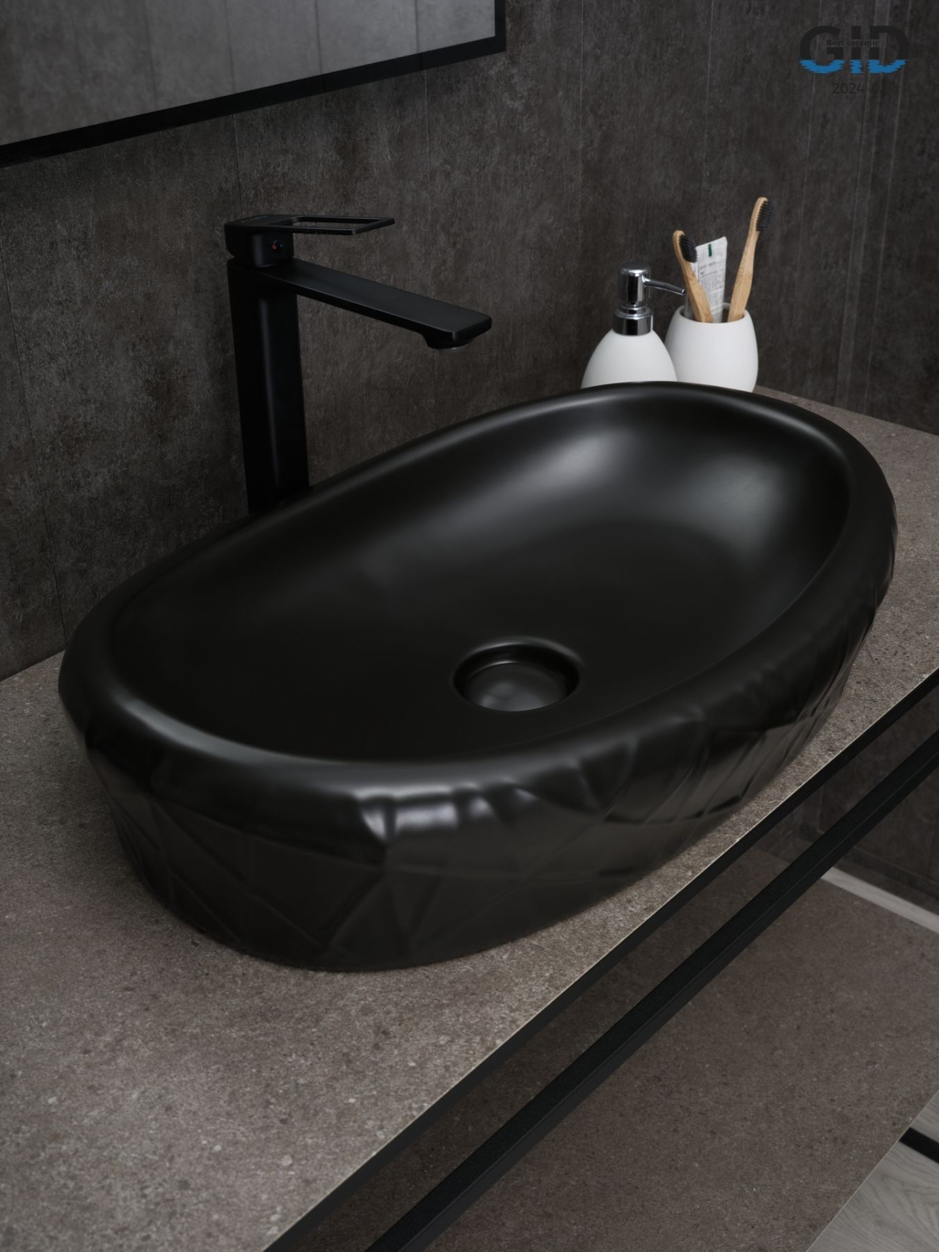 Creativo – это нестандартные формы, рожденные в Испании, сочетаются с европейскими стандартами качества, превращая каждую раковину в уникальное дизайнерское решение. Накладная раковина GID BM777— идеальный выбор для тех, кто ценит стиль и минимализм в интерьере. Матовая черная керамика придаст вашей ванной комнате современный и неповторимый акцент. Овальная форма создает ощущение легкости и гармонии, визуально расширяя пространство. Накладная конструкция не только упрощает монтаж, но и позволяет сэкономить место на столешнице. Это универсальное и востребованное решение для современных проектов.