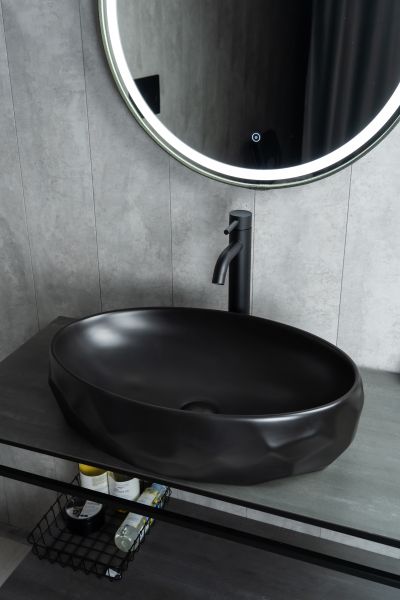 Серия Lago овальной формы — это испанское качество, соответствующее современным европейским требованиям. Накладная раковина GiD BM9030wx— идеальный выбор для тех, кто ценит стиль и минимализм в интерьере. Матовая черная керамика придаст вашей ванной комнате современный и неповторимый акцент. Овальная форма создает ощущение легкости и гармонии, визуально расширяя пространство. Накладная конструкция не только упрощает монтаж, но и позволяет сэкономить место на столешнице. Это универсальное и востребованное решение для современных проектов.