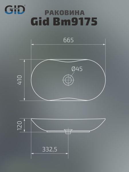 Раковина Gid Bm9175 53333 накладная черная матовая 66.5x41x12 купить