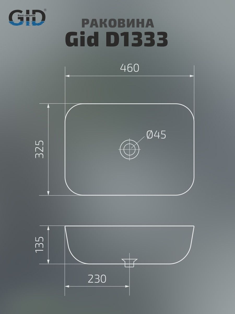 Раковина Gid D1333 51183 накладная белая 46x32.5x13.5 купить