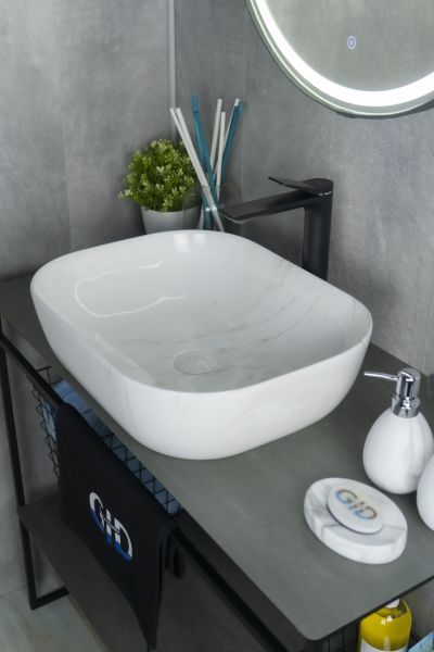 Серия Geometrico с прямоугольной формой: стиль и практичность с испанским качеством и европейскими стандартами. Раковина накладная GiD K397D9— элегантная модель прямоугольной формы, изготовленная из высококачественной керамики с глянцевой поверхностью в белом цвете, создающей эффект натурального камня. Её строгий и современный дизайн идеально подойдёт для ванных комнат в минималистичном или современном стиле. Модель не имеет отверстия под смеситель, что позволяет использовать различные варианты настенных или встраиваемых смесителей, предоставляя свободу в дизайне интерьера. Раковина предназначена для установки на столешницу, подчёркивая стильный и функциональный интерьер ванной комнаты.