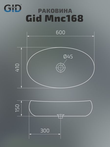 Раковина Gid Mnc168 54409 накладная под камень глянцевая 60x41x15 купить