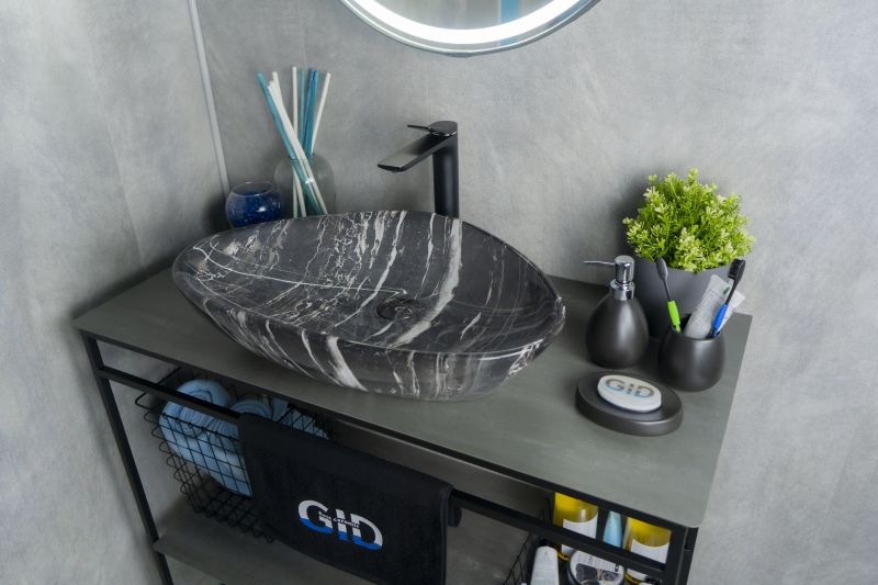 Creativo – это нестандартные формы, рожденные в Испании, сочетаются с европейскими стандартами качества, превращая каждую раковину в уникальное дизайнерское решение. GiD Mnc206 — сочетание элегантного дизайна и практичности для вашей ванной комнаты. Изготовлена из мелкопористой керамики с глянцевой черной поверхностью, имитирующей текстуру натурального камня, она придаст интерьеру свежесть и утонченность. Нестандартная треугольная форма обеспечивает оптимальное пространство для комфортного использования. Отсутствие отверстия под смеситель подчеркивает минималистичный стиль, а накладной способ монтажа на столешницу облегчает установку и позволяет создать современный облик ванной комнаты.