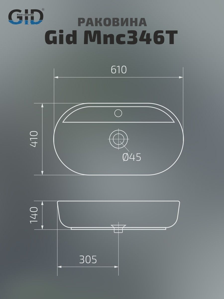 Раковина Gid Mnc346T 54471 накладная под камень глянцевая 61x41x14 купить