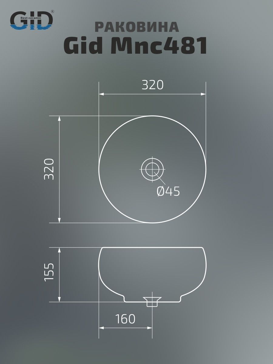 Раковина Gid Mnc481 54433 накладная под камень глянцевая 32x32x15.5 купить