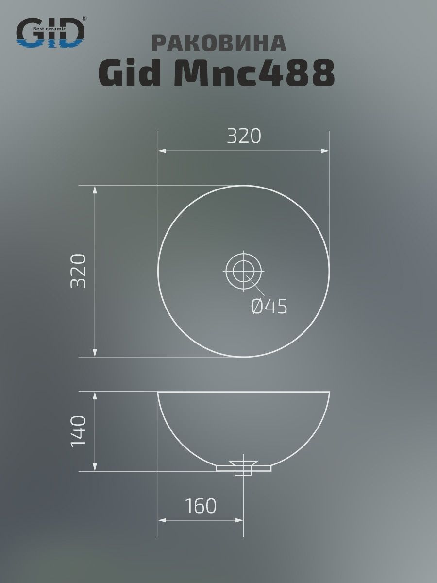 Раковина Gid Mnc488 54436 накладная под камень глянцевая 32x32x14 купить