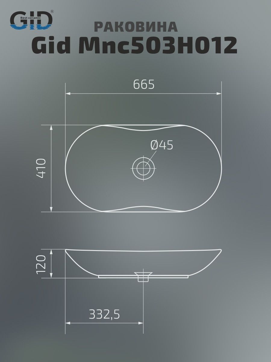 Раковина Gid Mnc503H012 54464 накладная под камень глянцевая 66.5x41x12 купить